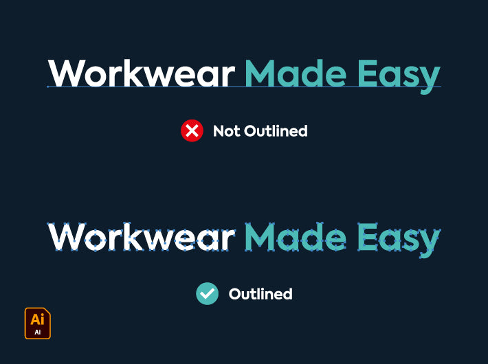 If text isn’t outlined and we don’t have the same font installed, the artwork may display incorrectly. Converting to outlines guarantees your typography stays accurate and consistent.